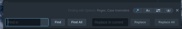 Donde son realmente útiles es en la función de buscar y reemplazar de Atom. Para abrirlo con un atajo de teclado deberemos pulsar Ctrl+F, y para activarlo debemos ir a la derecha de la ventana que nos aparece y pulsar el botón «.*», que activará las expresiones regulares en ambos campos de buscar y reemplazar.