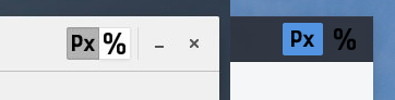 Lleva siendo así prácticamente desde que implementé la GtkHeaderBar en Pimagizer, pero como habéis podido ver, recientemente uso el tema Arc, que implica tener un fondo oscuro en las barras de menús y herramientas. Y el problema surge ahí, en que los botones que tan bonitos se veían con el tema por defecto de GTK, pero cambia con un tema oscuro: