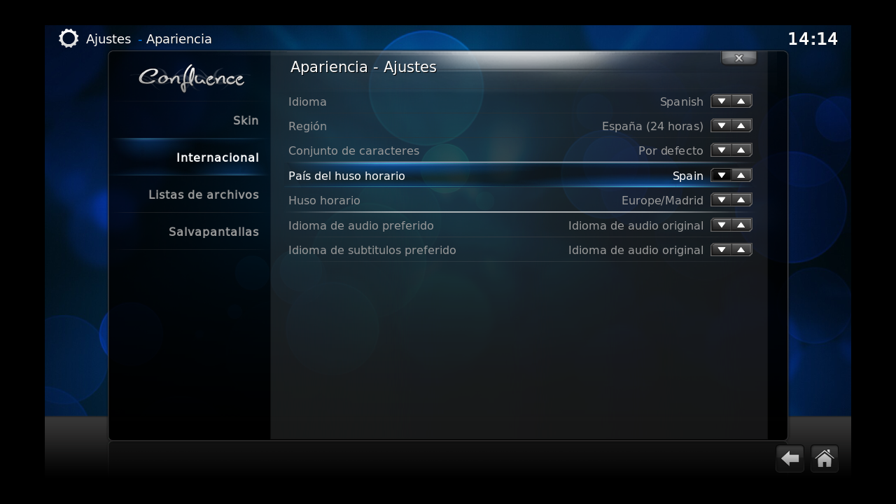 Lo siguiente que vamos a hacer es configurar la región: Es decir, necesitamos ajustar la hora a la que nosotros tenemos. Vamos a Sistema > Ajustes > Internacional. Allí configuramos todo lo que necesitemos: El idioma, la región (para el formato de la hora) y el país del huso horario, para que os ponga la hora de España.