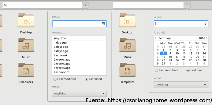Otra mejora que viene es también los filtros, que nos ayudan a refinar las búsquedas. Ahora podremos señalar de una forma mucho más amable al usuario las fechas entre las que buscar. No sólo buscar por fechas, sino también por tipo de archivo.