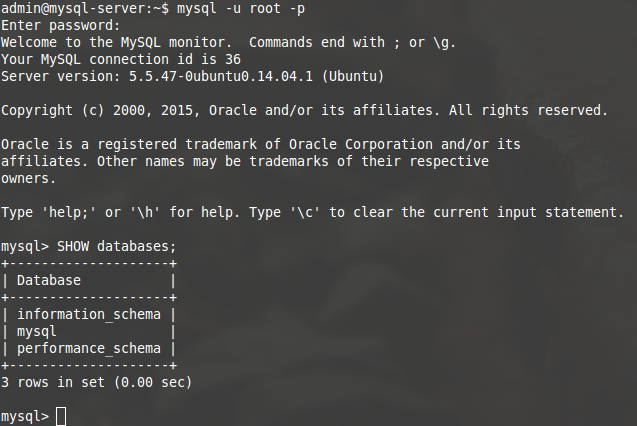 mysql -u root -p