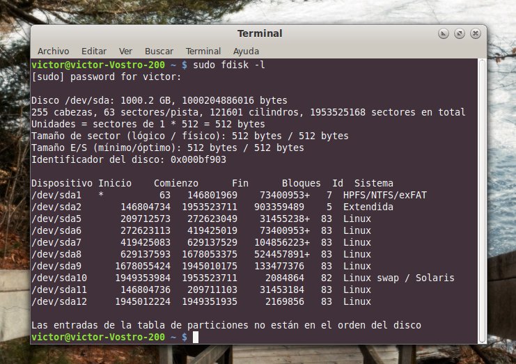 O si queremos una partición en concreto: