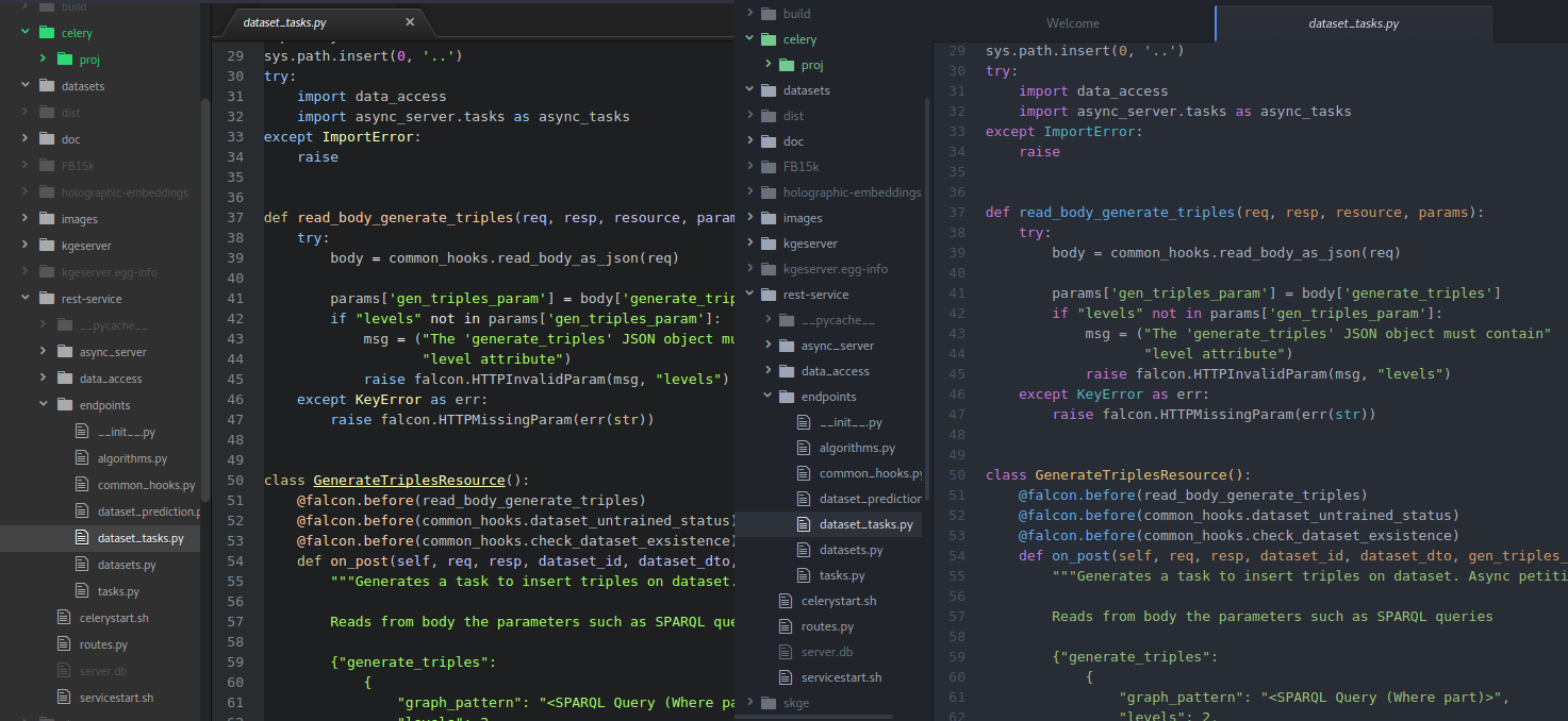 Hay que reconocerlo. Antes de llegar a la versión 1.0 la interfaz por defecto de Atom era francamente horrible. El tema por defecto Atom fue sustituido por uno más moderno y flat: One. Este es bastante más agradable a la vista. Tenemos una muestra del código antes y después.