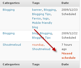 La explicación a este problema es sencilla: WordPress utiliza un sistema cron para gestionar, entre otras cosas, las entradas programadas. Sin embargo, no puede tener una tarea cron real en el ordenador donde esté instalado, por lo tanto, lo simula, de tal forma que cada vez que se carga una página cualquiera de WordPress, se ejecuta el cron y si hay alguna entrada programada, la publica. Así que es posible que este error se produzca porque en la hora en la que se había programado, no había ningún usuario en la web.