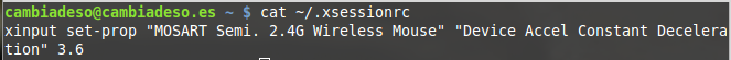 Si optáis por la segunda, la solución es fácil. Consiste en añadir al fichero /home/usuario/.xsessionrc el comando anterior de xinput que nos funciona. Simplemente hay que ejecutar